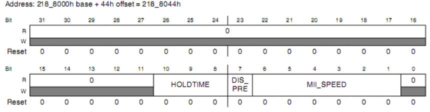 Because we use the external 50MHz active clock to connect GPIO16, guess that the internal MAC clock will not be lower than 50MHz, so modify the MSCR to 0x9.