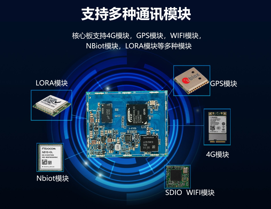 The Core Board Supports 3G Modules, 4G Modules, GPRS Modules, WIFI Modules, Bluetooth Modules, GPS Modules and Other Modules